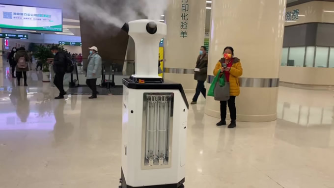 消毒機器人什么場合作用大,大型公共場所使用消毒機器人進行消毒