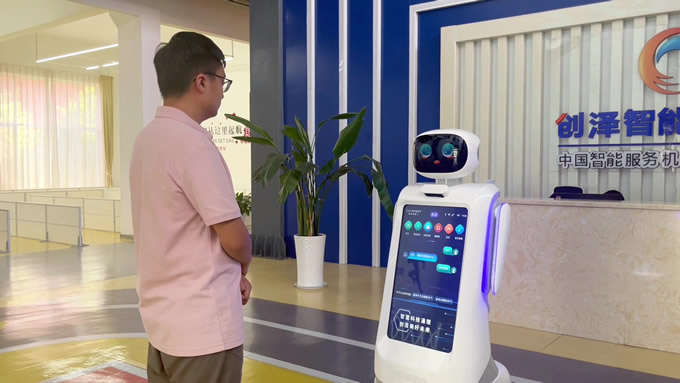 創澤智能消毒機器人和智能大屏機器人等多款機器人亮相蘭洽會,彰顯了創澤AI技術實力與場景深耕能力