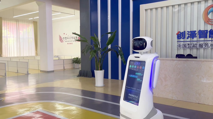 創澤智能消毒機器人和智能大屏機器人等多款機器人亮相蘭洽會,彰顯了創澤AI技術實力與場景深耕能力