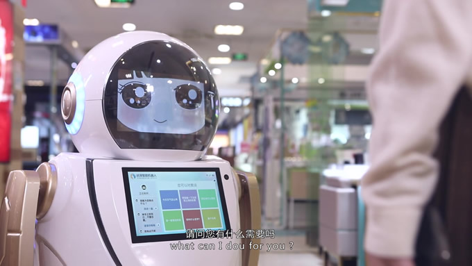 會(huì)說(shuō)英文的迎賓機(jī)器人
