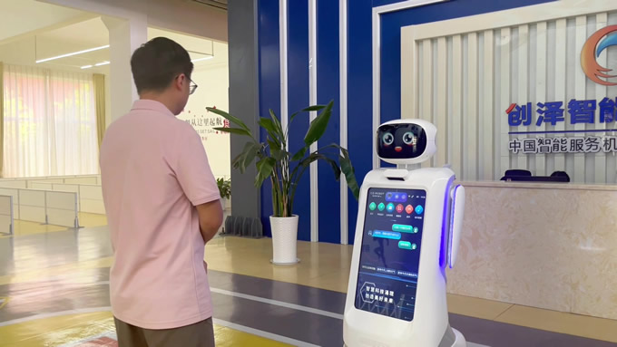 創(chuàng)澤智能消毒機器人和智能大屏機器人等多款機器人亮相蘭洽會,彰顯了創(chuàng)澤AI技術實力與場景深耕能力