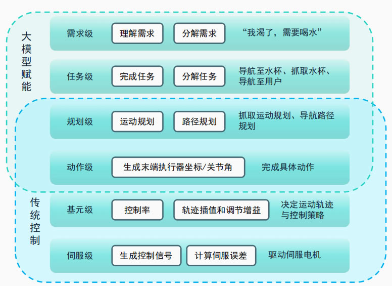 機器人的技術創新任務主要在于人形機器人關鍵技術的突破,其中在人形機機器人本體上的重要技術任務在于開發基于人工智能大模型的人形機器人“大腦”與 開發控制人形機器人運動的“小腦”。大模型作為爆火的人工智能概念,推動了人形機器人大腦的形成,助力人形機器人具有人的感知、交互與決策能力;對 于控制系統仍在切入中。
