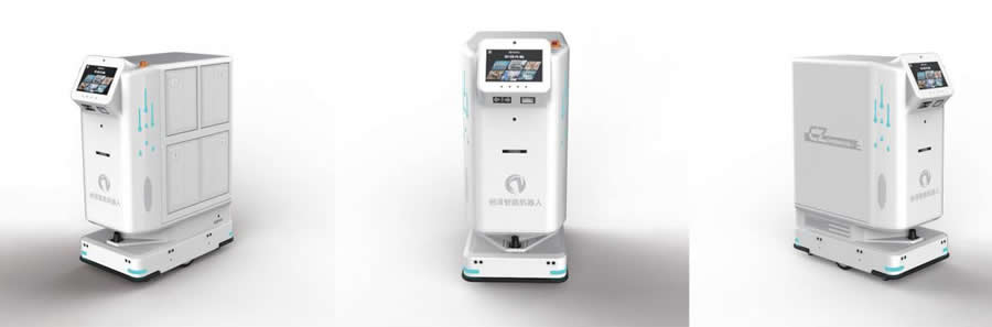 特點:輪式移動機器人,箱體式機構,配有紅外自動抽屜,具有語音交互及刷卡驗證功能。