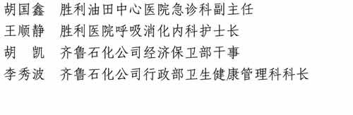 王順靜 勝利醫院呼吸消化內科護士長胡凱 齊魯石化公司經濟保衛部干事
