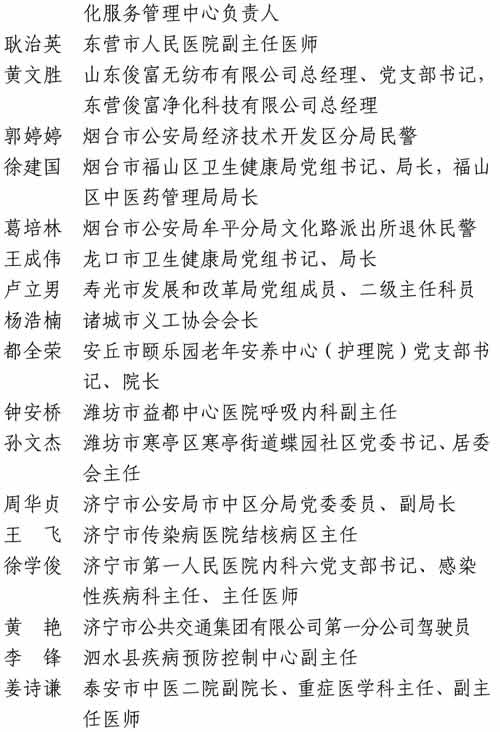 黃 艷濟寧市公共交通集團有限公司D一分公司駕駛員李鋒泗水縣疾病預防控制中心副主任