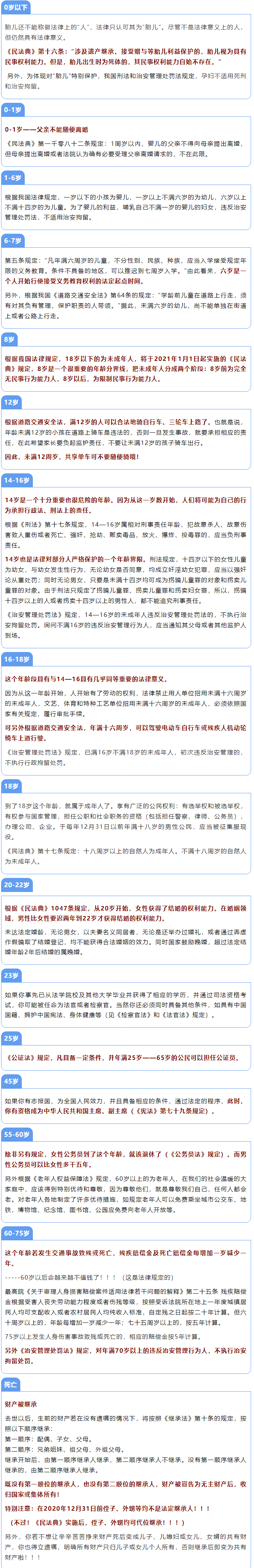 《民法典》實施后,法律年齡隨之改變,當(dāng)我們從一個受精卵那天起,按下年齡的計時器,我們的故事就計時開始了。其實,法律也和年齡一樣,伴隨著我們的一生。