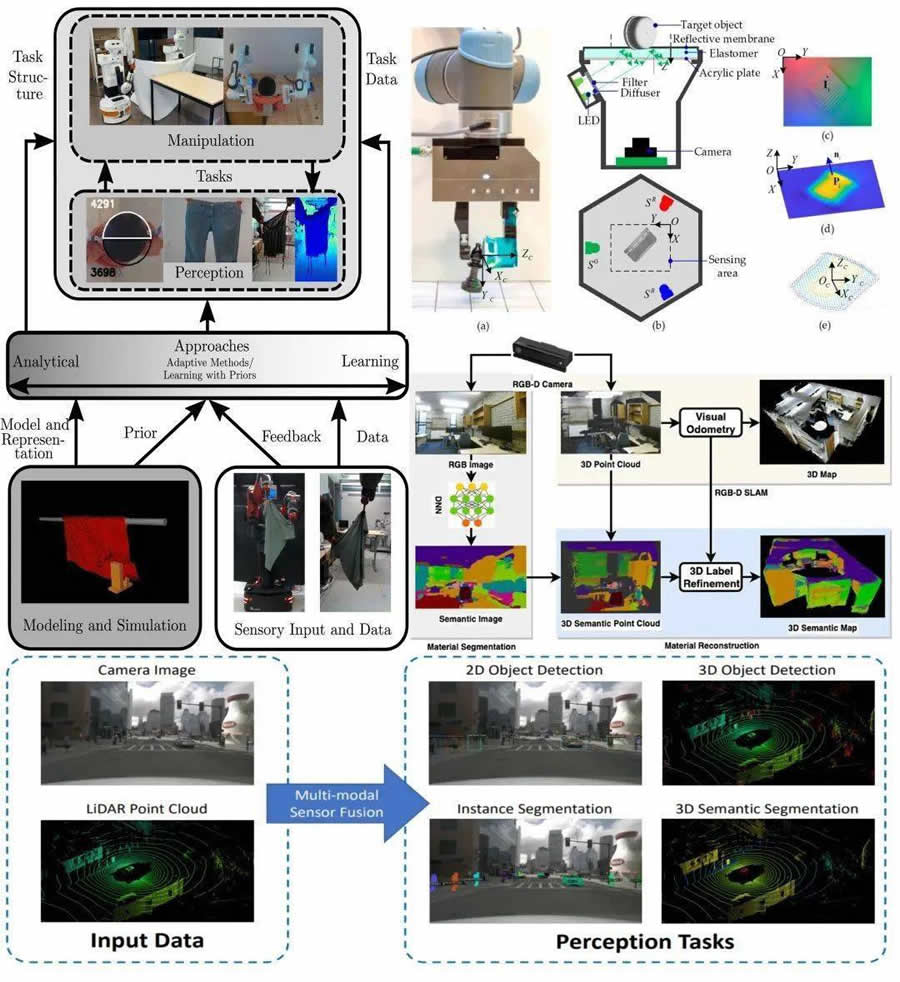2 多模態(tài)信息融合可克服單一傳感器存在的局限性,提供更多面、魯棒的信息,有助于在機(jī)器人導(dǎo)航、人機(jī)交互、環(huán)境監(jiān)測(cè)、自動(dòng)駕駛等取得更好性能;同時(shí),面臨傳感器不一致性、數(shù)據(jù)同步、信息不完整等挑戰(zhàn)。