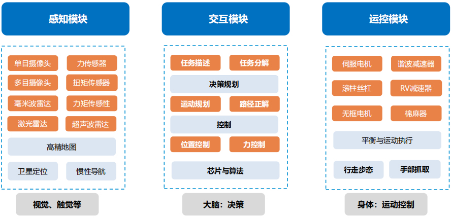 人形機器人構成:三大模塊,軟件與硬件交互