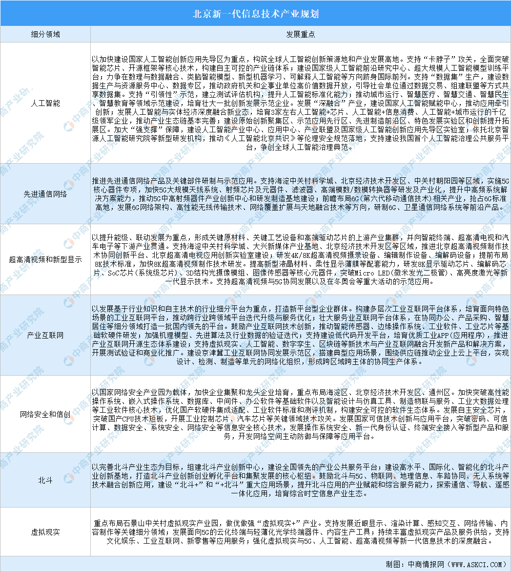 新一代信息技術(shù):以聚焦前沿、促進融合為重點,突出G端L域、關(guān)鍵環(huán)節(jié),扶持壯大一批出色品牌企業(yè)和特色產(chǎn)業(yè)集群,重點布局海淀區(qū)、朝陽區(qū)、北京經(jīng)濟技術(shù)開發(fā)區(qū),力爭到2025年新一代信息技術(shù)產(chǎn)業(yè)實現(xiàn)營業(yè)收入2.5萬億元。