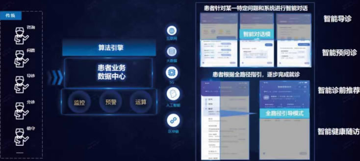 診前階段:基于商湯“大醫”開發的“智能陪診助手”為每一位患者推薦合適的醫院科室、專病醫生;同時提供預問診功能,負責向候診患者提前收集病癥信息,并形成結構化電子病歷。