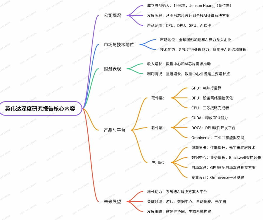 英偉達(dá)(NVIDIA)是L先的人工智能和圖形處理器公司,由黃仁勛等人于1993年創(chuàng)立。公司從圖形芯片設(shè)計(jì)起家,現(xiàn)已發(fā)展為提供全棧AI計(jì)算解決方案的企業(yè)。隨著AI技術(shù)的快速發(fā)展,英偉達(dá)的GPU在AI服務(wù)器市場(chǎng)中扮演關(guān)鍵角色,特別是在并行計(jì)算和深度學(xué)習(xí)任務(wù)中。報(bào)告指出,英偉達(dá)的數(shù)據(jù)中心業(yè)務(wù)和AI芯片需求強(qiáng)勁,推動(dòng)了公司收入和利潤(rùn)的顯著增長(zhǎng)。公司通過(guò)硬件(如GPU、DPU、CPU)和軟件平臺(tái)(如CUDA、DOCA、Omniverse)構(gòu)建了強(qiáng)大的產(chǎn)品生態(tài)系統(tǒng)。
