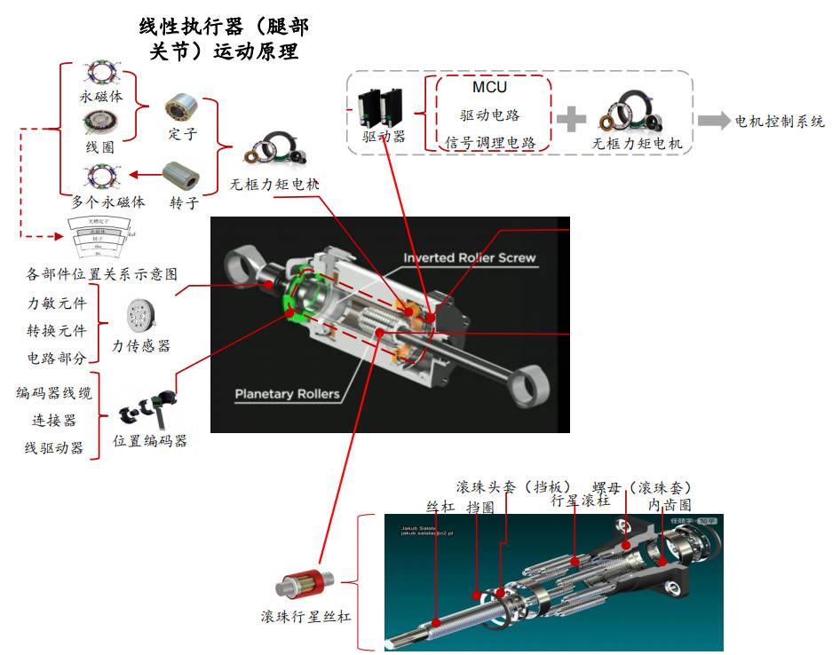 人形機器人感知系統成本占比7.3%,執(zhí)行系統成本占比53.2%;線性執(zhí)行器成本占比31.0%;旋轉執(zhí)行器成本占比17.9%;其他成本占比39.5%