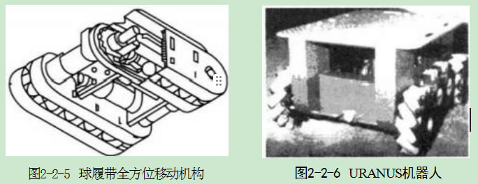 1992年,日本神戶制鋼所的西川晃平等人研制了一種球履帶全方位移動機 構3-11.123,結構示意圖見圖2-2-5。該全方位移動機構有兩條履帶,每個履帶內平 行放置兩條桿,分別由直流伺服電機通過履帶驅動,而每條履帶內各自分別放入2個橡膠球,通過兩條履帶的運動組合及球的轉動即可實現全方位移動功能。