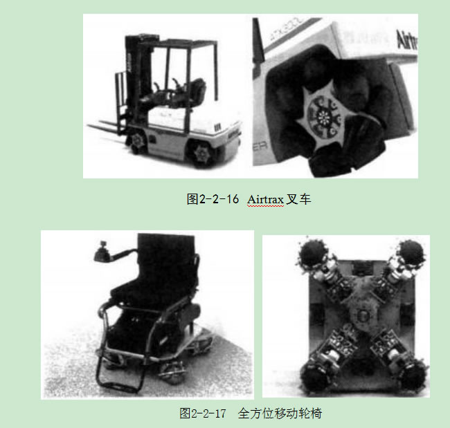 Airtrax 公司是世界上D一個將全方位移動機器人應用于商業開發的公司,該 公司D一次生產了大型全方位輪,并且將4個大型Mecanum 輪子做成工程叉車, 如圖2-2-16所示,主要用于倉庫貨物運輸用途,除了具有一般叉車功能外,使用更 靈活,操作更簡單。