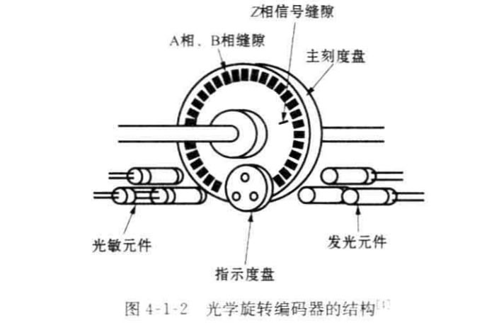 以圖4-1-2為例說明光學編碼器的結構。光學編碼器由發光元件、屏蔽光的固 定光柵、與轉軸一起旋轉的帶光柵的轉盤和固定的光敏元件組成。發光元件和光敏 元件安放在碼盤的兩側,當轉盤轉動時,根據固定的和運動的光柵的排列,光敏元件 接收的光通量會發生變化。光敏元件輸出的波形經過整形后形成脈沖,根據脈沖計 數,可以得到固定在碼盤上的轉軸的角位移。在測量中,Z后得到的光強信號用閾 值變換成離散的方波,在亮和暗的狀態之間作選擇。分辨率以每轉周期數(CPR)度量。Z小的角分辨率可以容易地從編碼器的CPR 額定值計算出。典型的編碼 器可擁有2000 CPR, 而光學編碼器工業可容易地制造出具有10000 CPR 的 編 碼 器。當然,根據所需的帶寬,Z關鍵的是編碼器需要足夠快,以計算期望的軸轉速。