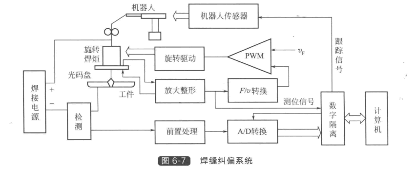 焊接機器人所用的傳感器要求準確的檢測出焊口的位置和形狀信息,然后傳送給控制器 進行處理。在焊接的過程中,存在著強烈的弧光、電磁干擾及高溫輻射、煙塵等因素,并伴 隨著物理化學反應,工件會產生熱變形,因此,焊接傳感器也需要具有很強的抗干擾能力。