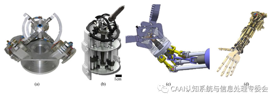 商業(yè)手腕和研究手腕之間也存在著明顯的差異。市面上的手腕可以作為獨(dú)立的假肢,也可以作為工業(yè)和外科手臂的集成部分。商業(yè)假肢手腕往往是被動(dòng)裝置,具有離散的鎖定位置,可調(diào)摩擦離合器,或彈性關(guān)節(jié),所有這些都有可能用于操縱。研究用的手腕應(yīng)用廣泛,包括假肢、類人機(jī)器人、太陽(yáng)能追蹤器和外科機(jī)器人。設(shè)計(jì)采用串行、并行和混合機(jī)制。正如預(yù)期的那樣,研究裝置包含了更多種耦合方案和驅(qū)動(dòng)技術(shù)。