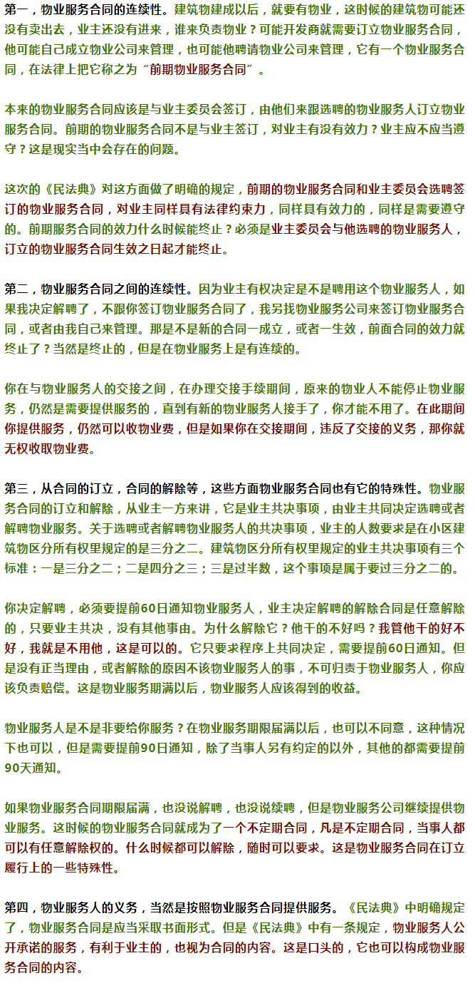 《民法典》當中規定的典型合同,實際上新增加的就是這兩個(物業服務合同、保理合同)。如果說保理合同是適應金融類的發展,需要要增加為典型合同,那物業服務合同是適應現代社會中物業服務需求加進來的合同。如果保理合同是商事合同,那物業服務合同就是民事合同。保理合同解決的是營商環境,物業服務合同解決的是民生環境。下面我們分別來看一下: