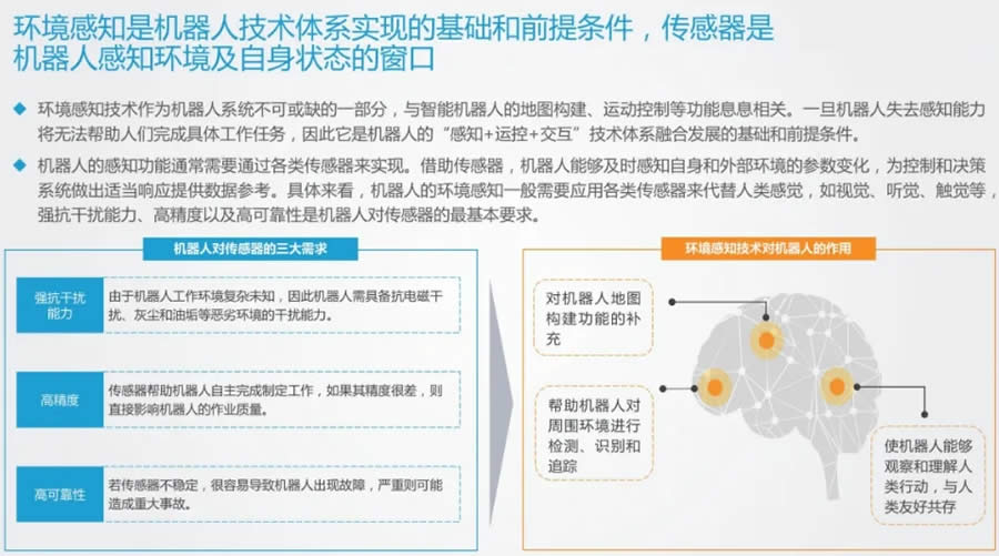 環境感知是機器人技術體系實現的基礎和前提條件,傳感器是機器人感知環境及自身狀態的窗口。