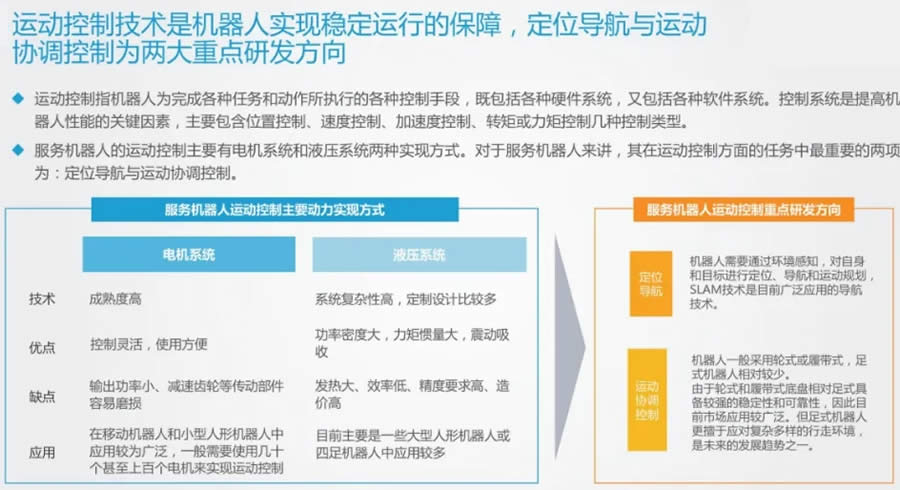 運動控制技術是機器人實現穩定運行的保障,定位導航與運動協調控制為兩大重點研究方向