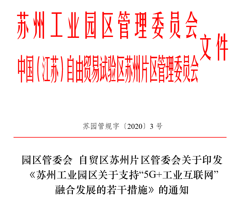 《蘇州工業園區關于支持“5G+工業互聯網”融合發展的若干措施》
