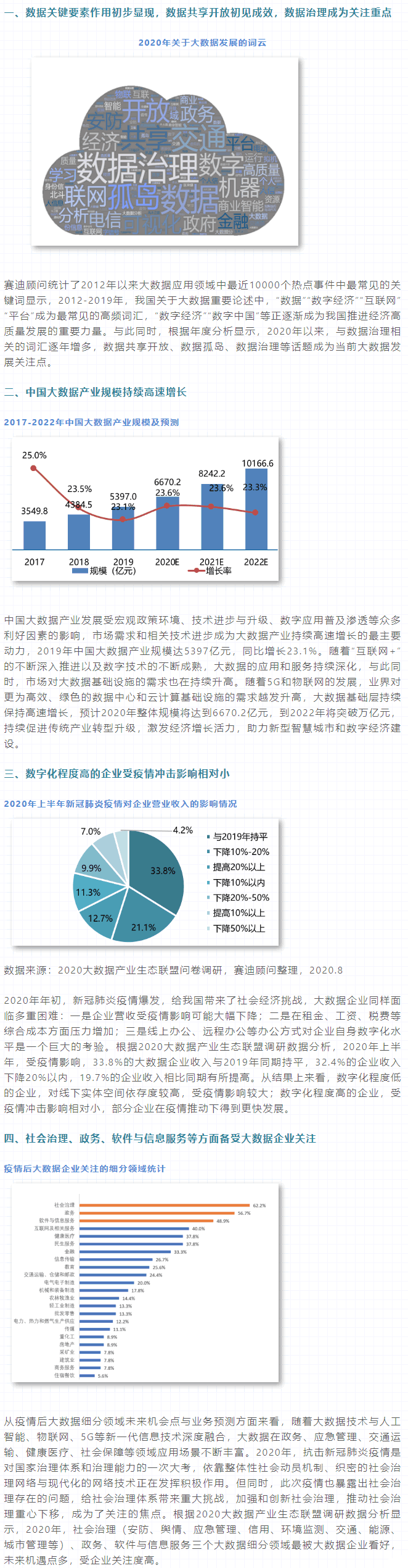 2020年,賽迪顧問聯合大數據產業生態聯盟,組織編寫了《2020年中國大數據產業發展研究報告》(簡稱《報告》),并于8月26日在2020(第五屆)大數據產業生態大會開幕論壇上正式對外發布。賽迪研究院副院長劉文強就《報告》主要內容做了發布。