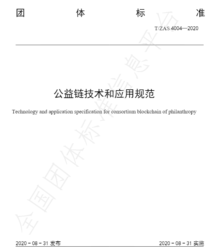 公益鏈技術和應用規范-國內公益區塊鏈標準