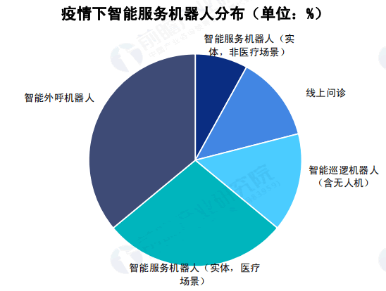 在智能服務機器人產品中,智能外呼機器人和醫療場景的智能服務機器人(實體)應用量G。智能外呼機器人的應用場景包括通 知、回訪、篩查、宣教等,其特點是機器能夠代替人進行并發呼叫。智能外呼機器人提G了篩查效率,減輕了基層工作者壓力;另外, 目前醫療服務場景的實體智能服務機器人的主要應用場景為清潔、消毒和配送,以替代人力完成重復性、機械性、簡單的工作為主。