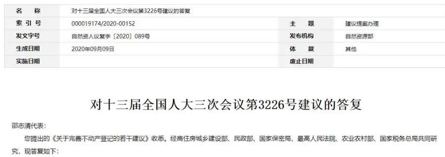 此外,答復(fù)就“關(guān)于不動產(chǎn)共有登記”等問題也做了明確回復(fù)。答復(fù)指出,不動產(chǎn)登記機(jī)構(gòu)以少數(shù)份額共有人不配合而不予辦理登記的問題,屬于執(zhí)行層面的問題,將加強(qiáng)監(jiān)督指導(dǎo),嚴(yán)格落實(shí)法律規(guī)定,切實(shí)維護(hù)不動產(chǎn)權(quán)利人合法權(quán)益。