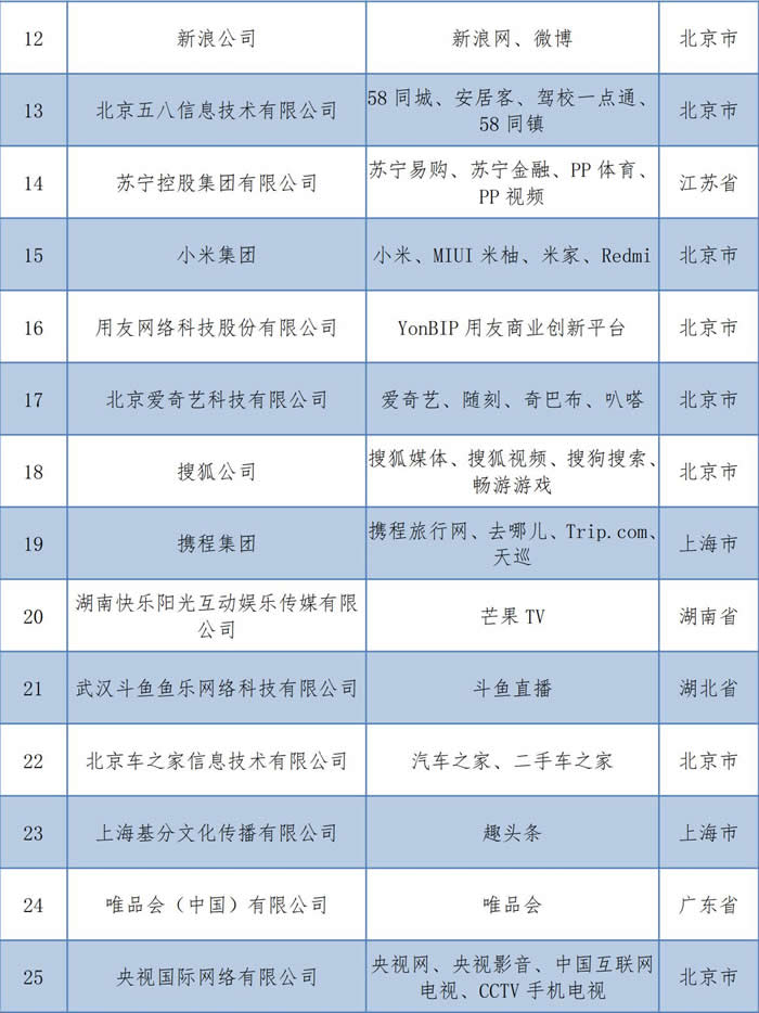 2020年中國互聯網綜合實力企業排行榜百強