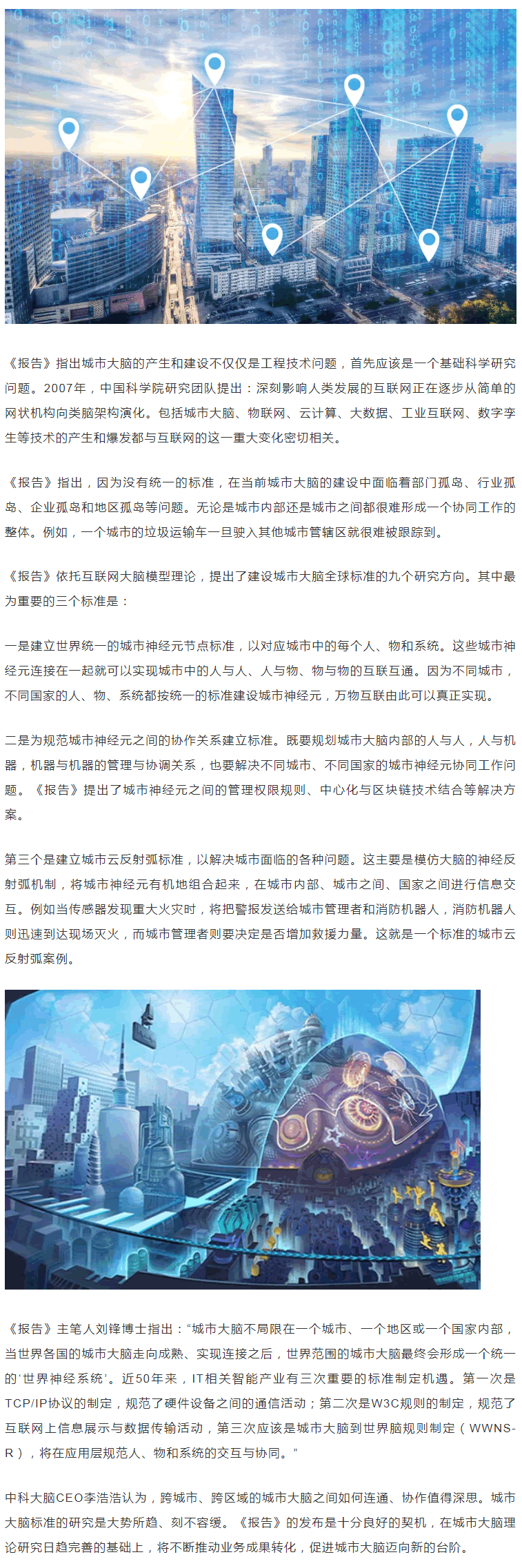 12月23日,城市大腦標準研究組、中國科學院虛擬經濟與數據科學研究中心等單位聯合發布了世界首份《城市大腦標準研究報告》(以下簡稱《報告》)!秷蟾妗吩敿氷U述了城市大腦的起源、發展、現狀和趨勢,并發布了相關理論基礎和構建城市大腦標準的九個研究方向等一系列重要研究成果。
