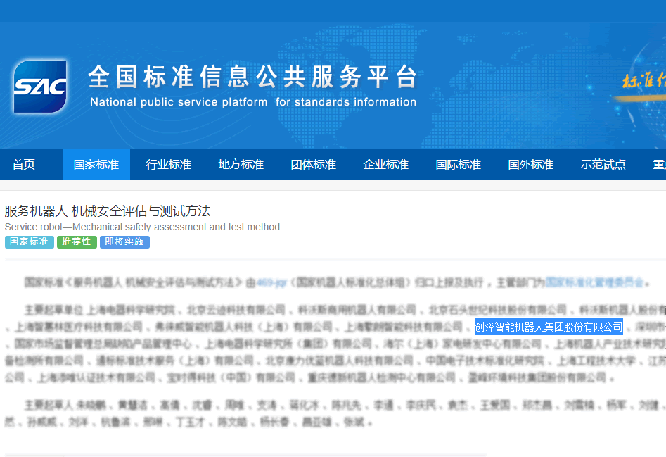 創澤集團參與服務機器人機械安全國家標準制定 |