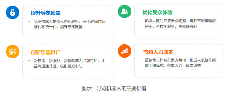 隨著自然語言處理、 深度學(xué)習(xí)等技術(shù)突破, 導(dǎo)覽機器人的視覺導(dǎo)航精度、 信號處理速度和抗干擾能力得以提升, 問答咨詢準(zhǔn)確率顯著提G, 人機交互更加深入流暢, 應(yīng)用深度逐步拓展。 同時, 導(dǎo)覽機器人在提升導(dǎo)覽質(zhì)量、 優(yōu)化 受眾體驗、 降本增效、 創(chuàng)新推廣等方面的應(yīng)用價值也被進一步挖掘。