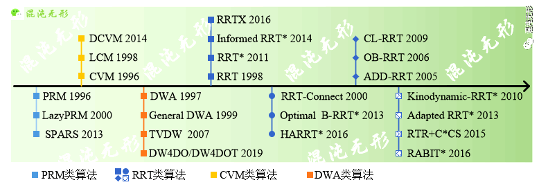基于狀態(tài)空間采樣的算法能夠在大面積、G緯度的空間中快速生成路徑,包括RRT和PRM類(lèi)算法等,具有概率完備性,其主要步驟包括隨機(jī)采樣、度量連接、碰撞檢測(cè)和路徑查詢。