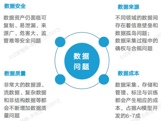 G質量的數據是AI算法模型成功的重要保障。目前,數據的獲取、標注到形成真正合適的數據仍占據AI解決方案的大部分資金與時間成本,同 時,數據的安全與確權問題也仍處于完善過程中。