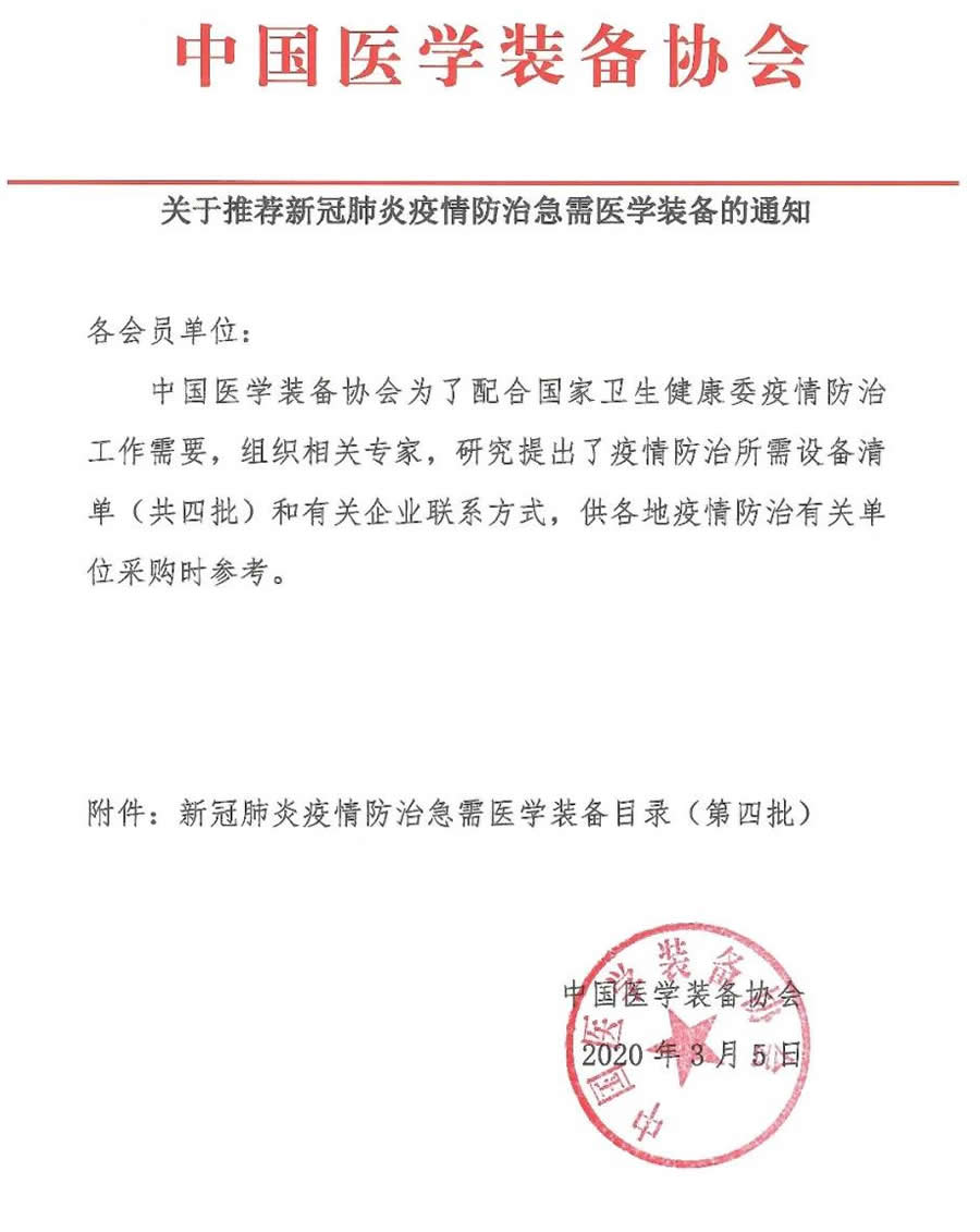 中國醫(yī)學(xué)裝備協(xié)會(huì)為了配合國家衛(wèi)生健康委疫情防治工作需要,組織相關(guān)專家,研究提出了疫情防治所需設(shè)備清 單(共四批)和有關(guān)企業(yè)聯(lián)系方式,供各地疫情防治有關(guān)單位采購時(shí)參考。