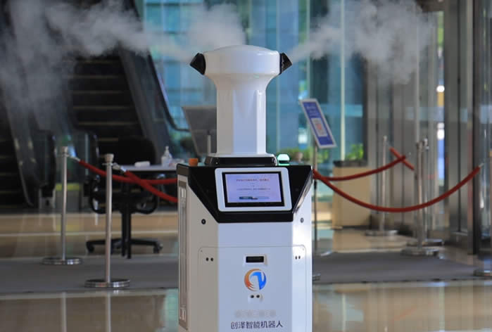 利用超聲波霧化廣覆蓋的智能消毒機器人,在小區(qū)充當著防疫小幫手的角色,替代傳統(tǒng)人工噴灑消毒液的工作,執(zhí)行標準化的防疫措施