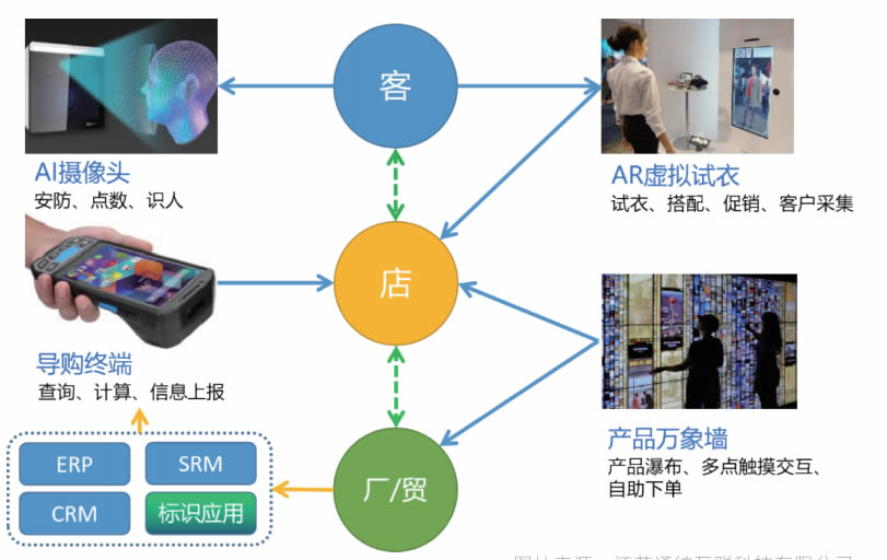 江蘇通紡互聯科技有限公司基于上述痛點,通過工業互聯網標識解析,建設服裝門店多粒度智蓄數據采集系統,將安防AI攝像頭、智能試衣間,邊緣計算智能導購終端,VR體驗通道及 個性化產品萬象墻等數字產品進行數據結構化。應用工業互聯網標識的數據承載能力,打通不 同系統之間的數字孤島,進行跨系統數據傳遞,促使信息融合。在為客戶提供具有J佳隱私保 護的自助式服務的同時,可通過UI交互式設計引導用戶許可、上報和保存個人數據,將工業互 聯網標識數據用于平臺的大數據分析和智能學習建模。