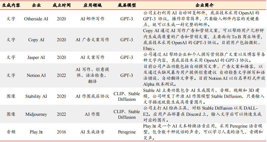 百度文心通過文字描述生成圖片;騰訊優圖完成對于人像面部的3D建模;阿里巴巴Lubanner自動完成素材分析 摳圖 配色等設計;剪映通過文字生成視頻
