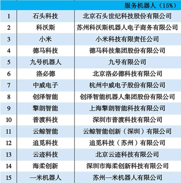 埃斯頓,大疆創新,航天科技,科沃斯,新松,石頭科技,天智航,埃夫特,華數機器人,海康機器人,錢江機器人,曠視科技,華中數控,云跡科技,節卡機器人