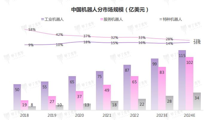 在多種家用、商用、公共服務場景的應用價值得以被開發,服務機器人市場規模快速放大,