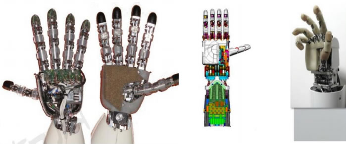 意大利 iCub 靈巧手有 20 個活動關節、9 個自由度。9 個電機只有 2 個集成在手掌內, 另外 7 個集成在前臂里。